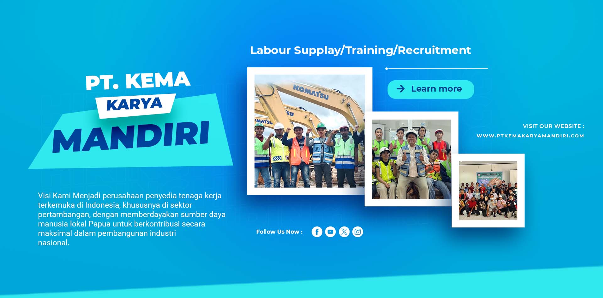 PT. Kema Karya Mandiri adalah perusahaan lokal yang didirikan di Timika, Papua Tengah, pada tanggal 30 Juni 2020. Beralamat di Jl. Elang Kuala Kencana, Timika, Papua Tengah, perusahaan kami berfokus pada penyediaan tenaga kerja yang berkualitas untuk sektor pertambangan serta berbagai industri lainnya. Kami berdedikasi untuk mendukung perkembangan ekonomi Papua dengan memanfaatkan potensi sumber daya manusia lokal, serta memenuhi kebutuhan tenaga kerja profesional di seluruh Indonesia.